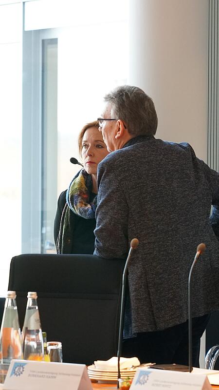 Berichte gab es auch zur Südschiene und dem Nordverbund. Peter Bagus aus der THW-Landeshelfervereinigung Nordrhein-Wetspfahlen gab einen kurzen Status zum Nordverbund und verwies auf ein geplantes Treffen im kommenden Monat. Elisabeth Kaiser MdB aus der THW-Landesvereinigung Sachsen und Thüringen e.V. berichtete zur Südschiene, dass ein Treffen im November 2023 stattgefunden habe und Themen zu Versicherungen und Mitgliederbeträgen aufgenommen wurden.
