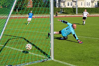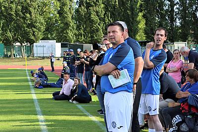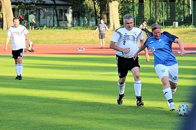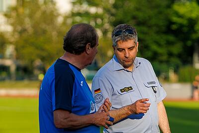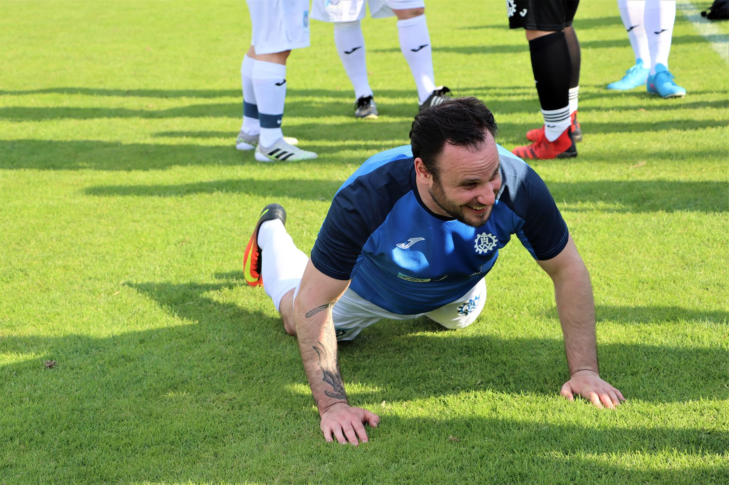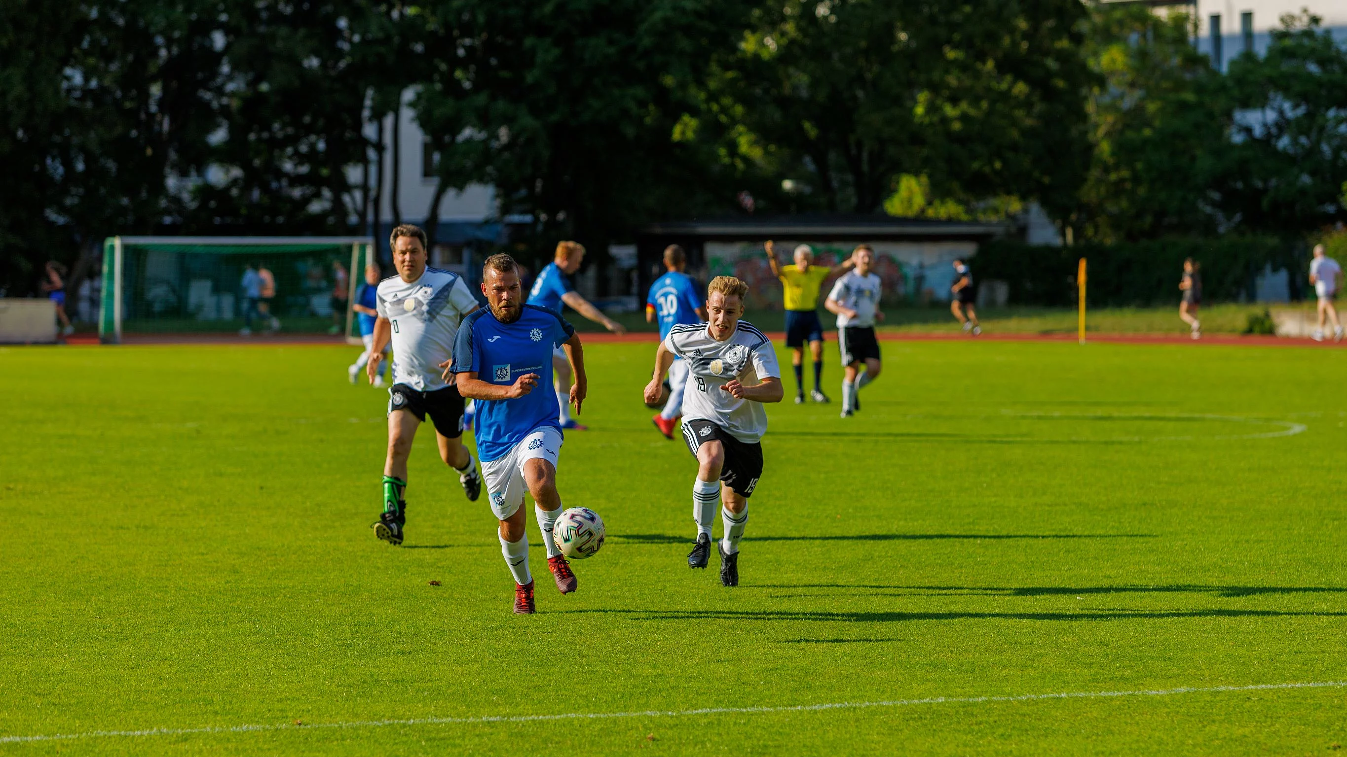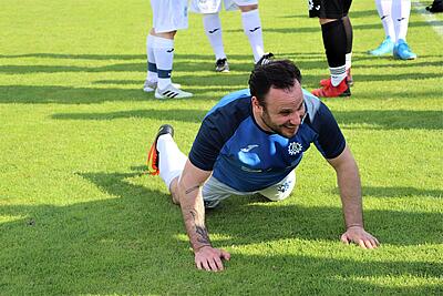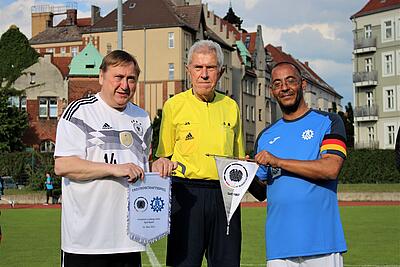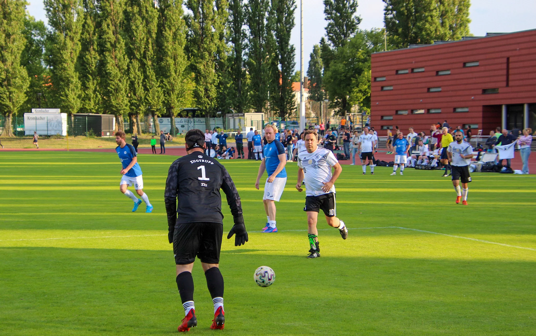 13 Spielerinnen und Spieler aus dem Ehrenamt und genauso viele aus dem Hauptamt trafen sich zum ersten Mal auf dem Rasen. Mittendrin: THW-Präsident Gerd Friedsam. Er hat extra seinen Urlaub unterbrochen, um für das THW auf dem Platz zu stehen. 30 Minuten Auf- und Vorbereitungszeit mussten reichen. Teamarbeit liegt dem THW im Blut und so fand sich die bunt gemischte Mannschaft schnell zusammen und wurde eine eigene Einheit.