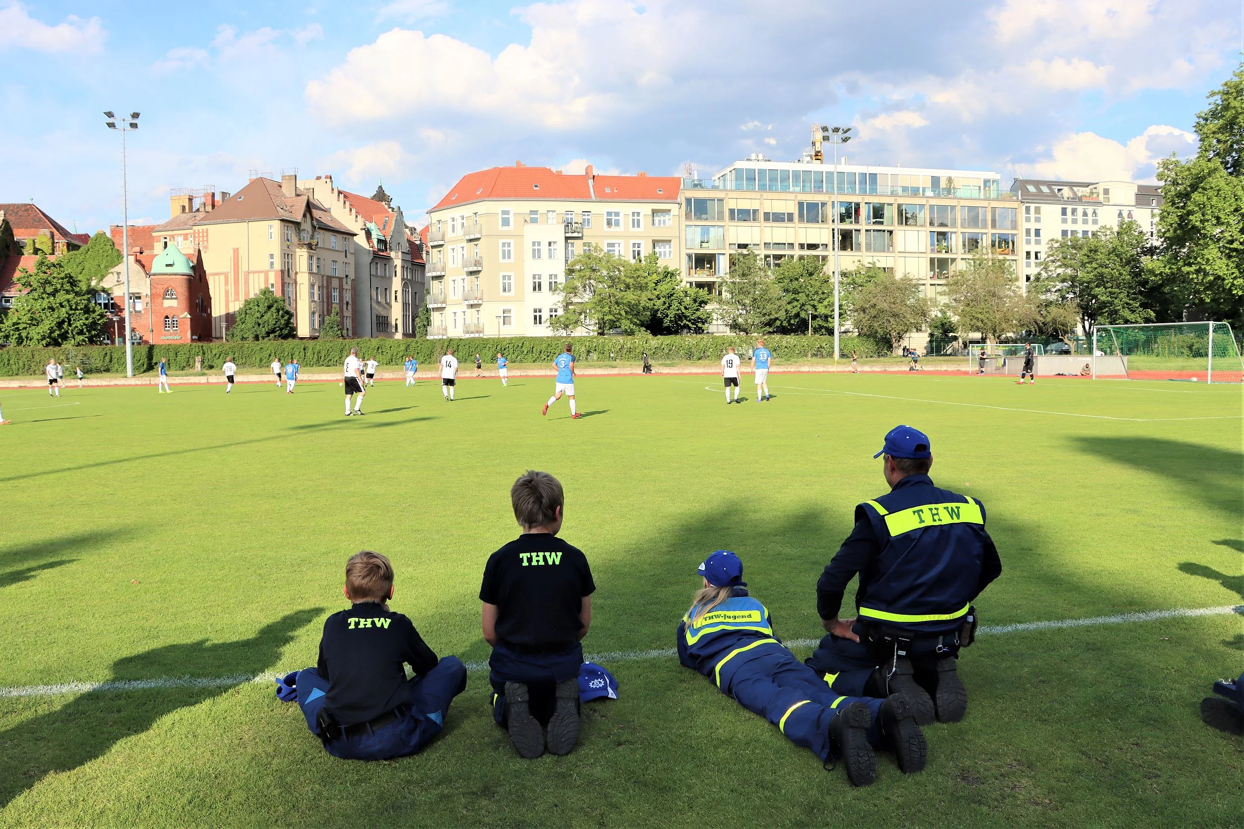Stürmer Clemes Backes (BA THW, Referat Arbeitssicherheit) brachte das THW in der 12. Minute in Führung. Tobender Applaus bei den vielen Gästen am Spielfeldrand. Doch nur 13 Minuten später zog der FC Bundestag nach und Kassem Taher Saleh (MdB) sorgte für ein Unentschieden. Wenige Minuten später brachte Bruno Hönel (MdB) den FC Bundestag in Führung. Nach einer kurzen Pause ging es hoch motiviert in die zweite Halbzeit. THW-Torwart Killian Kuchenbauer aus dem Ortsverband Dillingen hielt ein Ball nach dem anderen. Doch gegen Bruno Hönel (MdB) vom FC Bundestag hatte er keine Chance. 3:1 Endstand. Ein faires und unterhaltsames Spiel.
