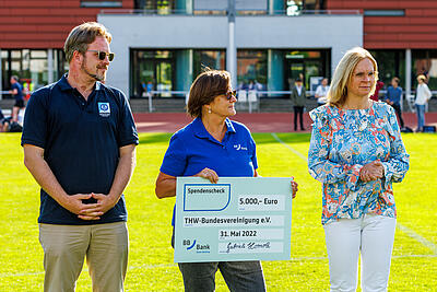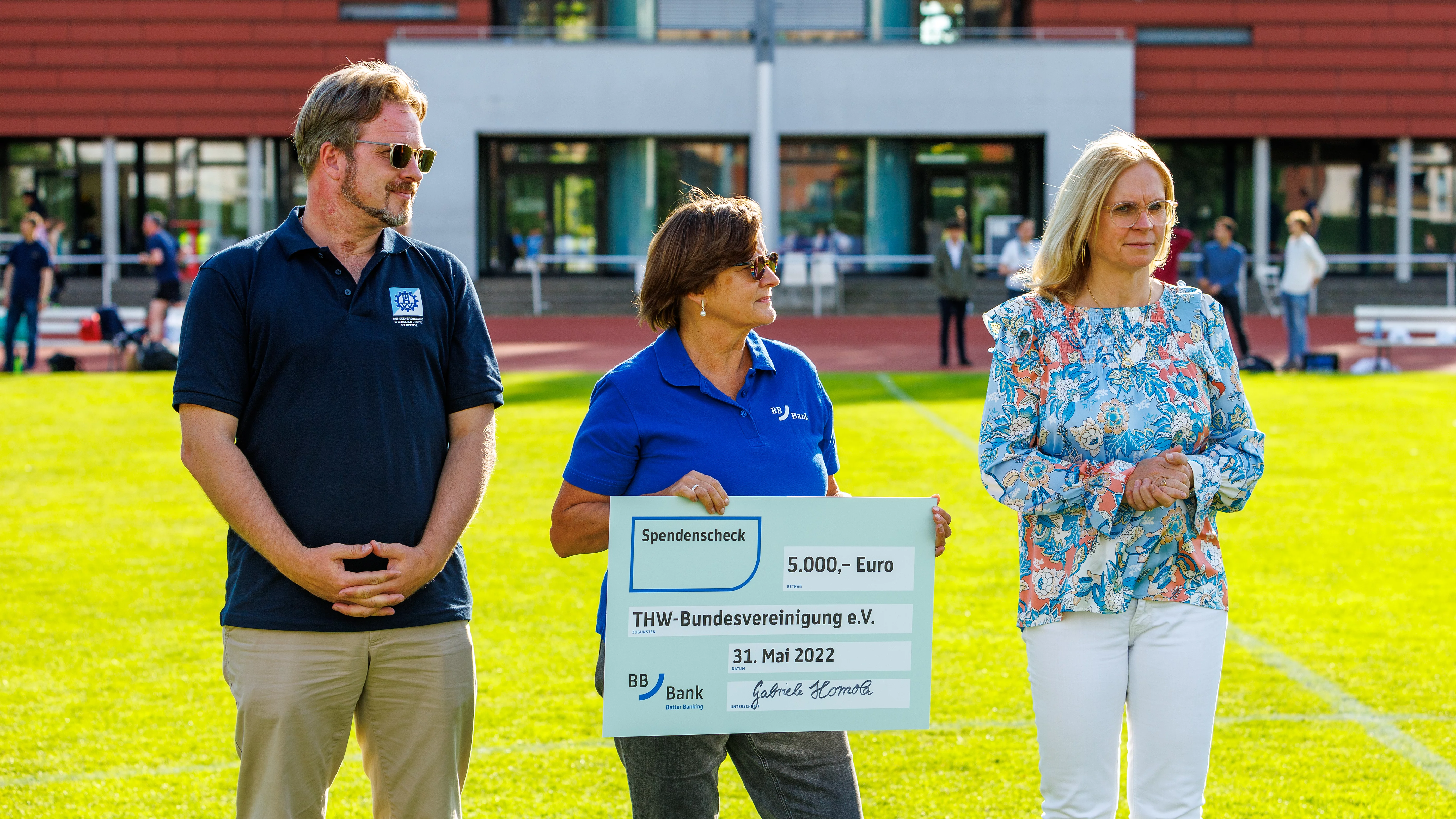 Das erste Spenden- und Freundschaftsspiel zwischen dem FC Bundestag und dem THW endet nach kurzer Führung durch das THW mit 3:1 für den FC Bundestag. 5000.00 Euro gehen an die THW-Landesjugend BEBBST für ein Projekt mit Geflüchteten.