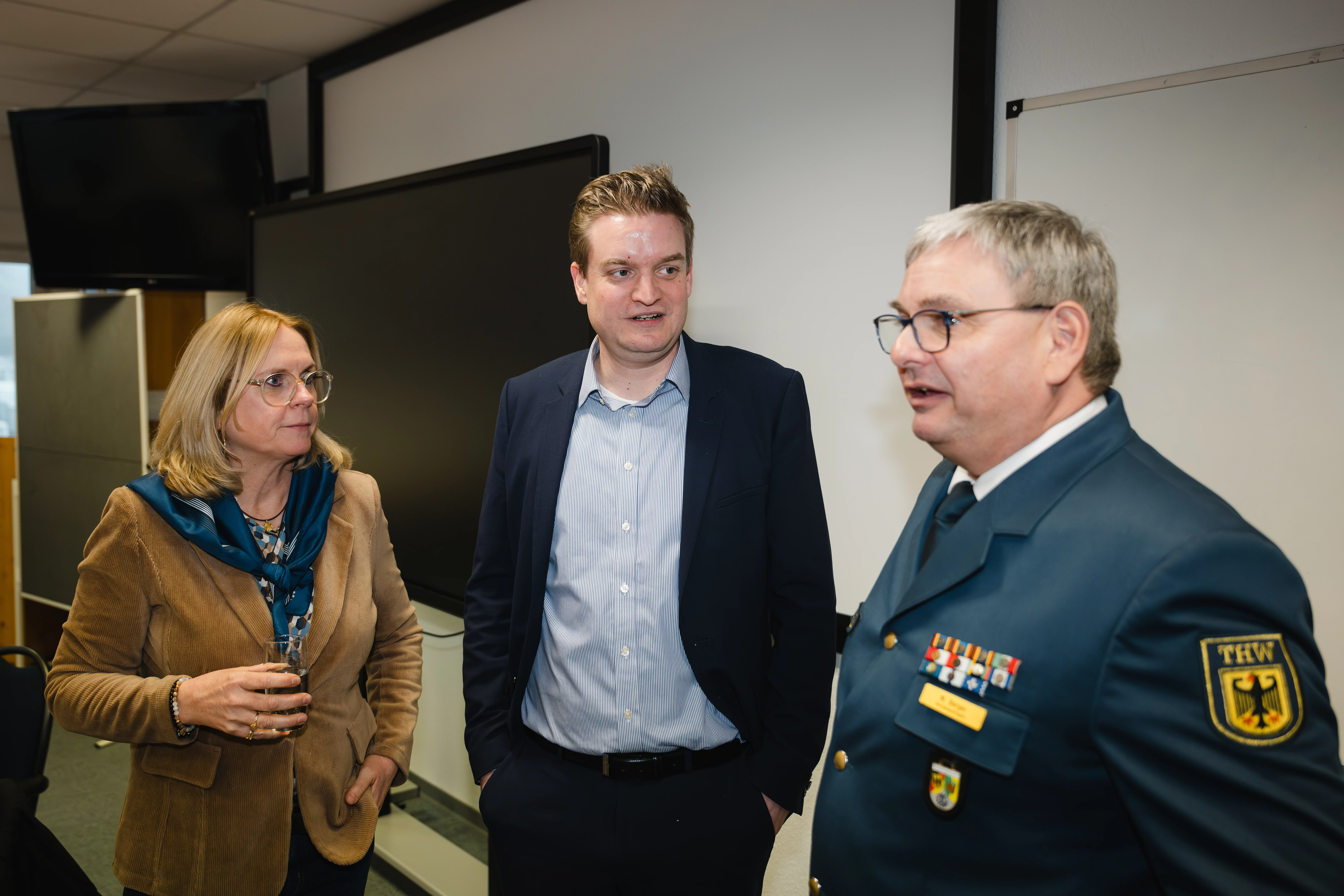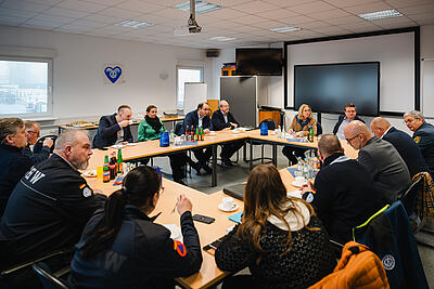 Nach einer Führung durch die Räumlichkeiten mit dem Ortsbeauftragten Matthias Berger, gab es Gelegenheit zum Austausch mit den ehrenamtlichen Helferinnen und Helfern. Begleitet von Vertretern aus der regionalen Politik und aus dem Hauptamt des THW, stand vor allem die langfristige Entwicklung des Ortsverbandes im Fokus.