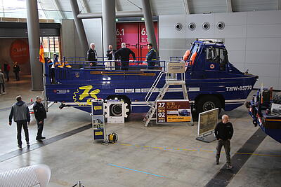 Der Stand der THWhS stach dieses Jahr besonders durch zwei Amphibienfahrzeuge hervor: das historische Fahrzeug "THW 87457" von 1943 und ein modernes Amphibienfahrzeug "THW 85770", von denen insgesamt nur sechs Stück produziert wurden. Diese beachtlichen Fahrzeuge verdeutlichten, wie das THW seit Jahrzehnten innovative Technik nutzt, um in Katastrophenfällen schnell und flexibel zu agieren. Alle Fahrzeuge der Ausstellung wurden auf eigener Achse zur Messe gebracht und zeigten eindrucksvoll ihre Einsatzfähigkeit – ein wahrer Publikumsmagnet.
