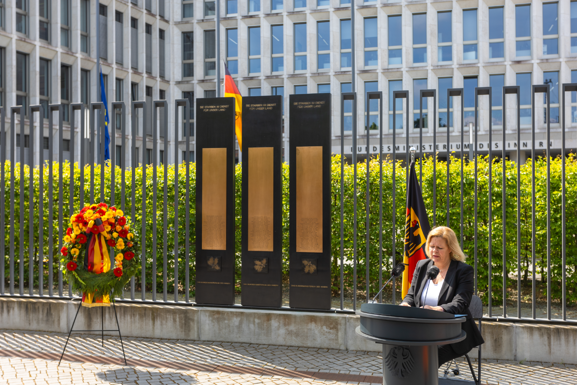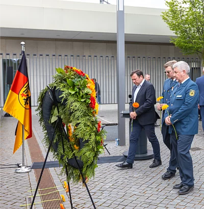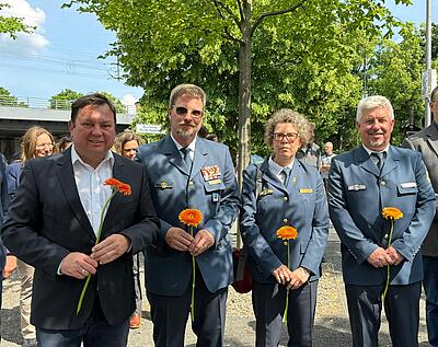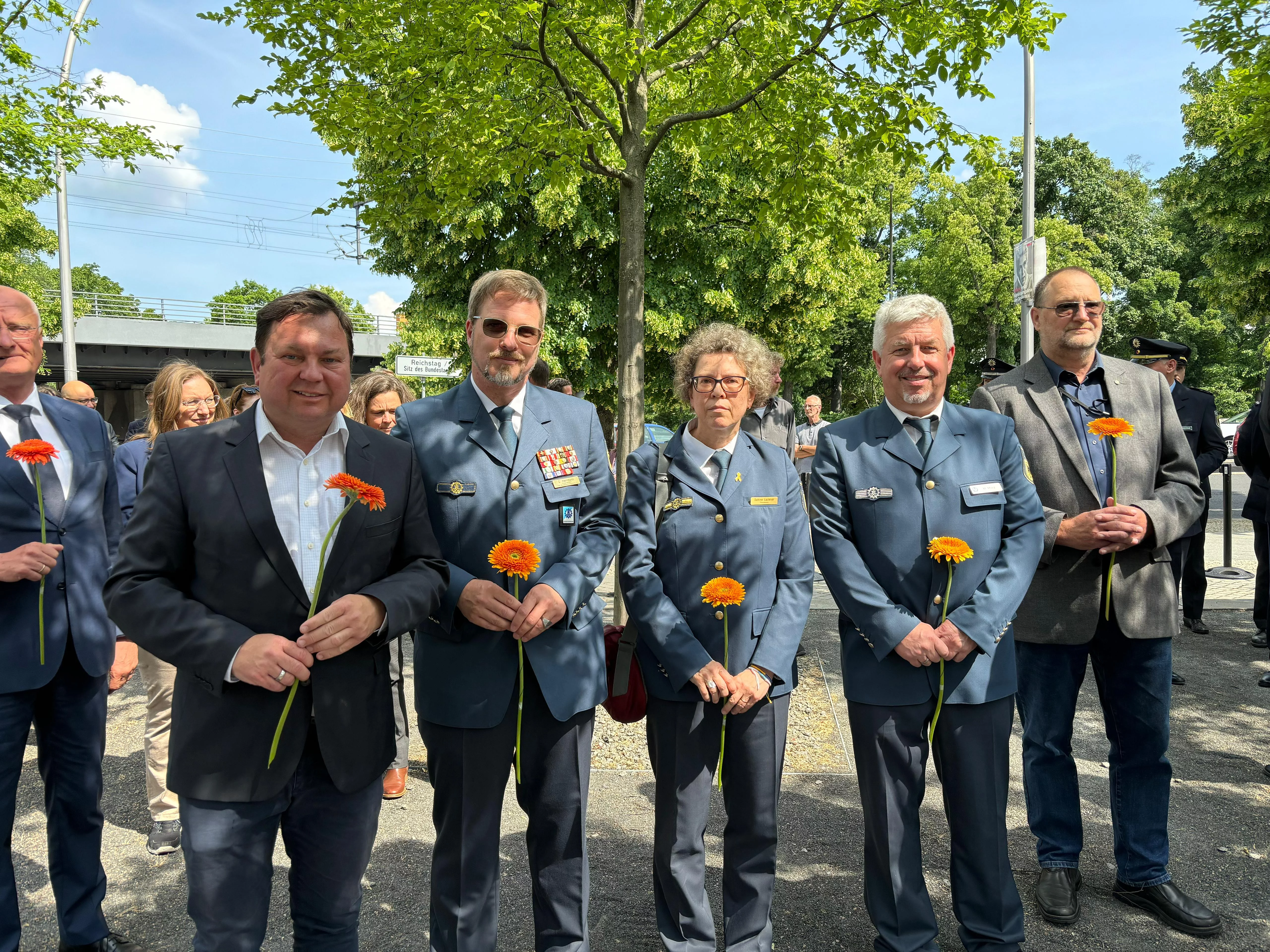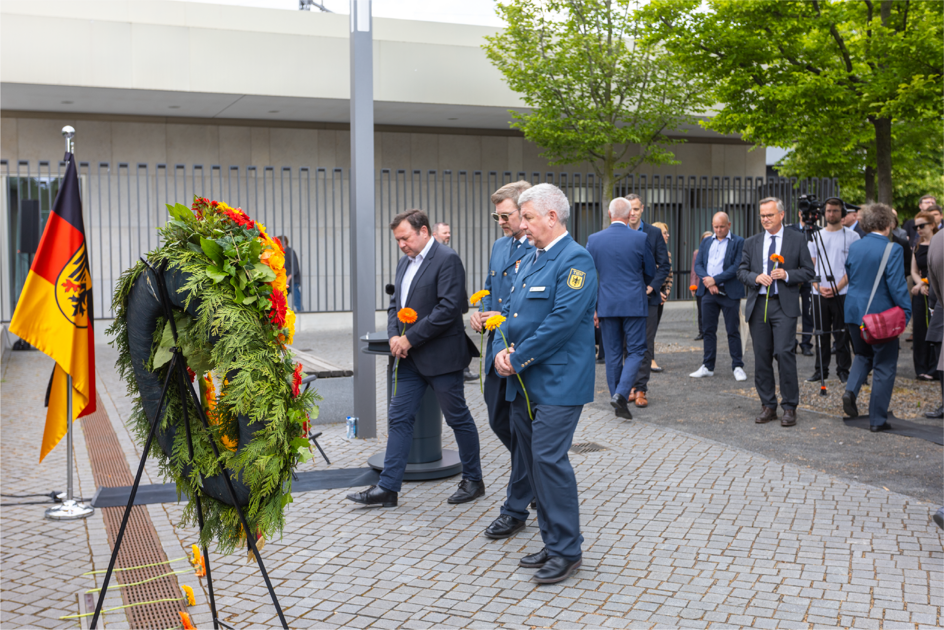 Am 24. Mai 2024 fand eine bewegende Gedenkzeremonie zu Ehren der im Dienst verstorbenen Beschäftigten des Geschäftsbereichs des Bundesministeriums des Innern und für Heimat (BMI) statt. Neben Bundesinnenministerin Nancy Faeser nahmen auch der Präsident der THW-Bundesvereinigung Martin Gerster MdB, Vizepräsident der THW-Bundesvereinigung Christian Herrmann und THW-Präsidentin Sabine Lackner an der Veranstaltung teil. Gemeinsam mit hochrangigen Vertretern von BKA und Bundespolizei erinnerten sie an die Einsatzkräfte, die im Dienst für die Sicherheit der Bevölkerung ihr Leben verloren haben.
