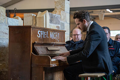 „Tribut an die Menschlichkeit, von Naturkatastrophen, Verlust und Hoffnung« - mit der Uraufführung der Klaviersonate und dem letzten Spiel auf dem „Klavier von Ahrweiler“ starten THW und Feuerwehr ganz konkret mit dem zukünftigen gemeinsamen Museum der Deutschen Feuerwehren und des Technischen Hilfswerks.