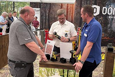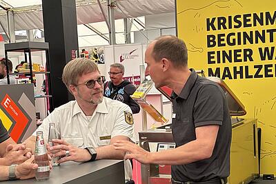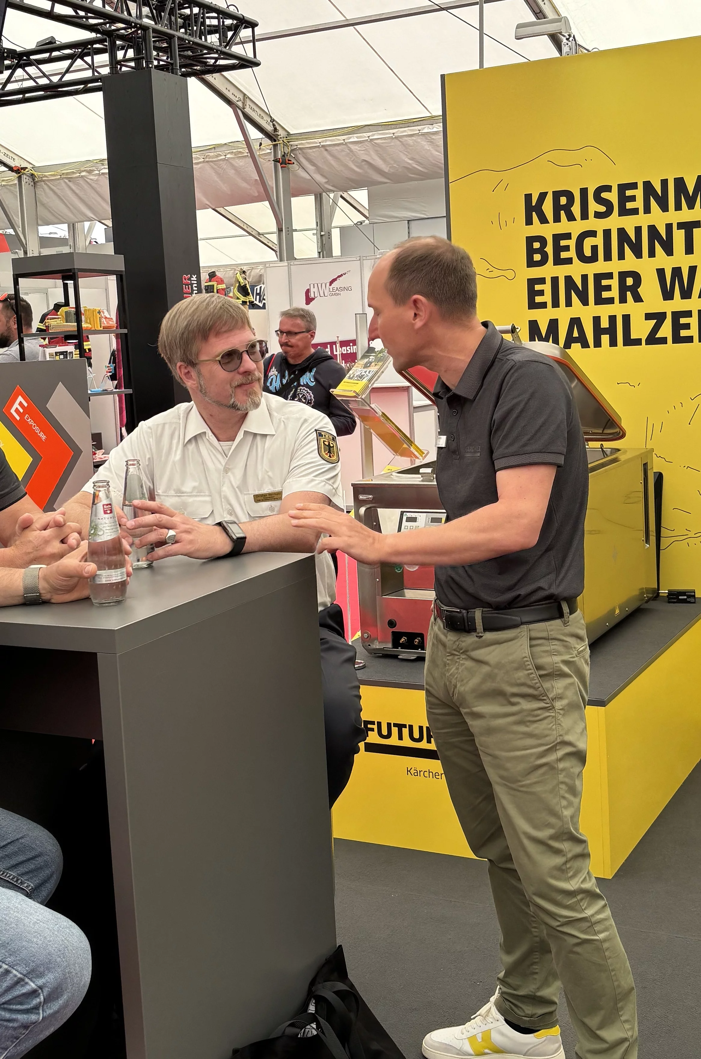 Für die THW-Bundesvereinigung standen gezielte Gespräche mit Partnern aus Industrie, Politik und anderen Hilfsorganisationen im Vordergrund. Mit vor Ort: Vizepräsident Christian Herrmann sowie der Landessprecher Baden-Württemberg Michael Hambsch.
