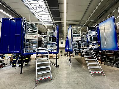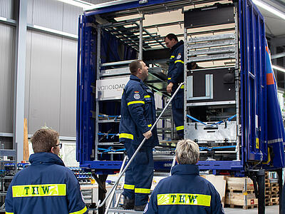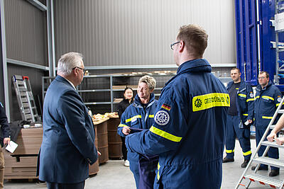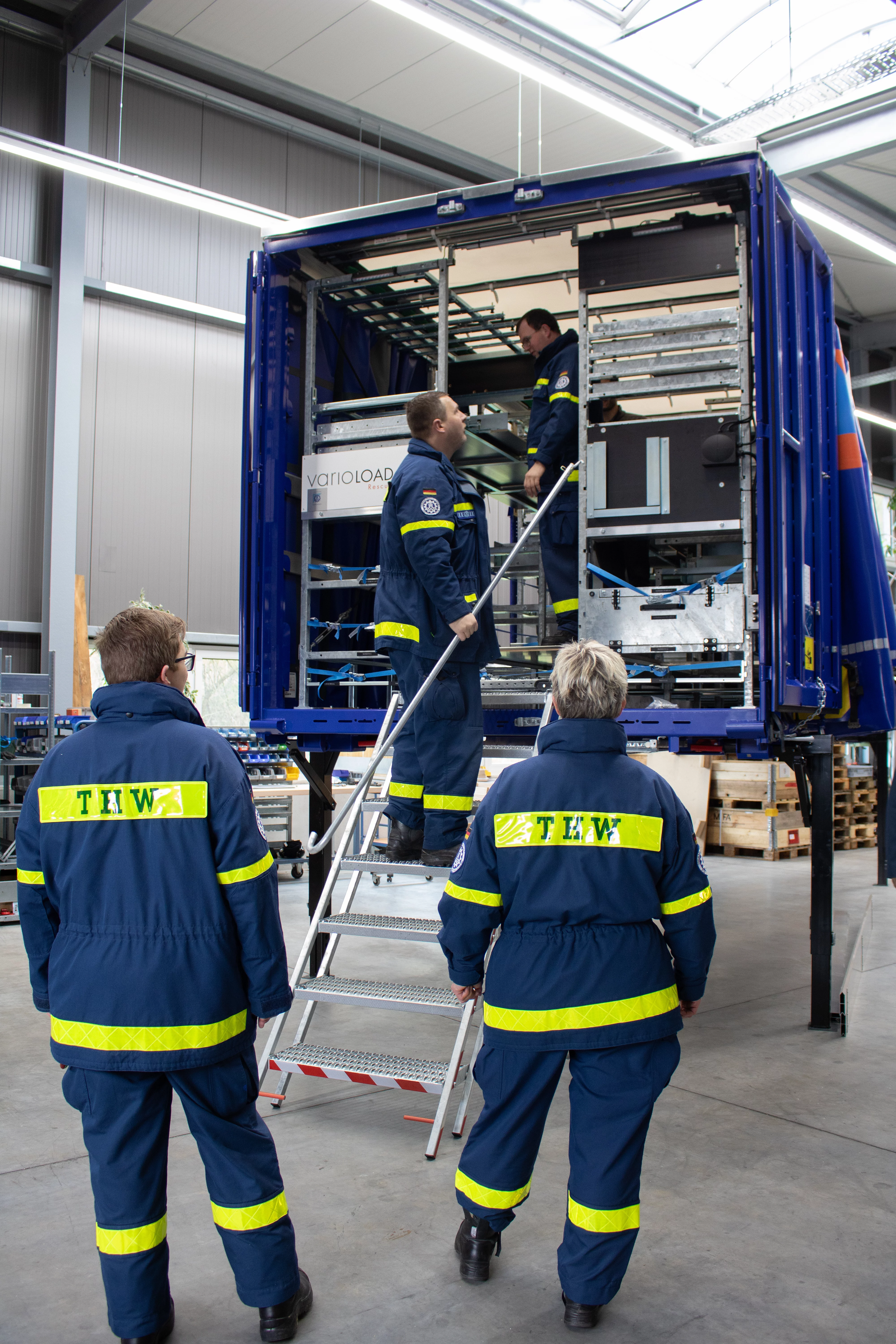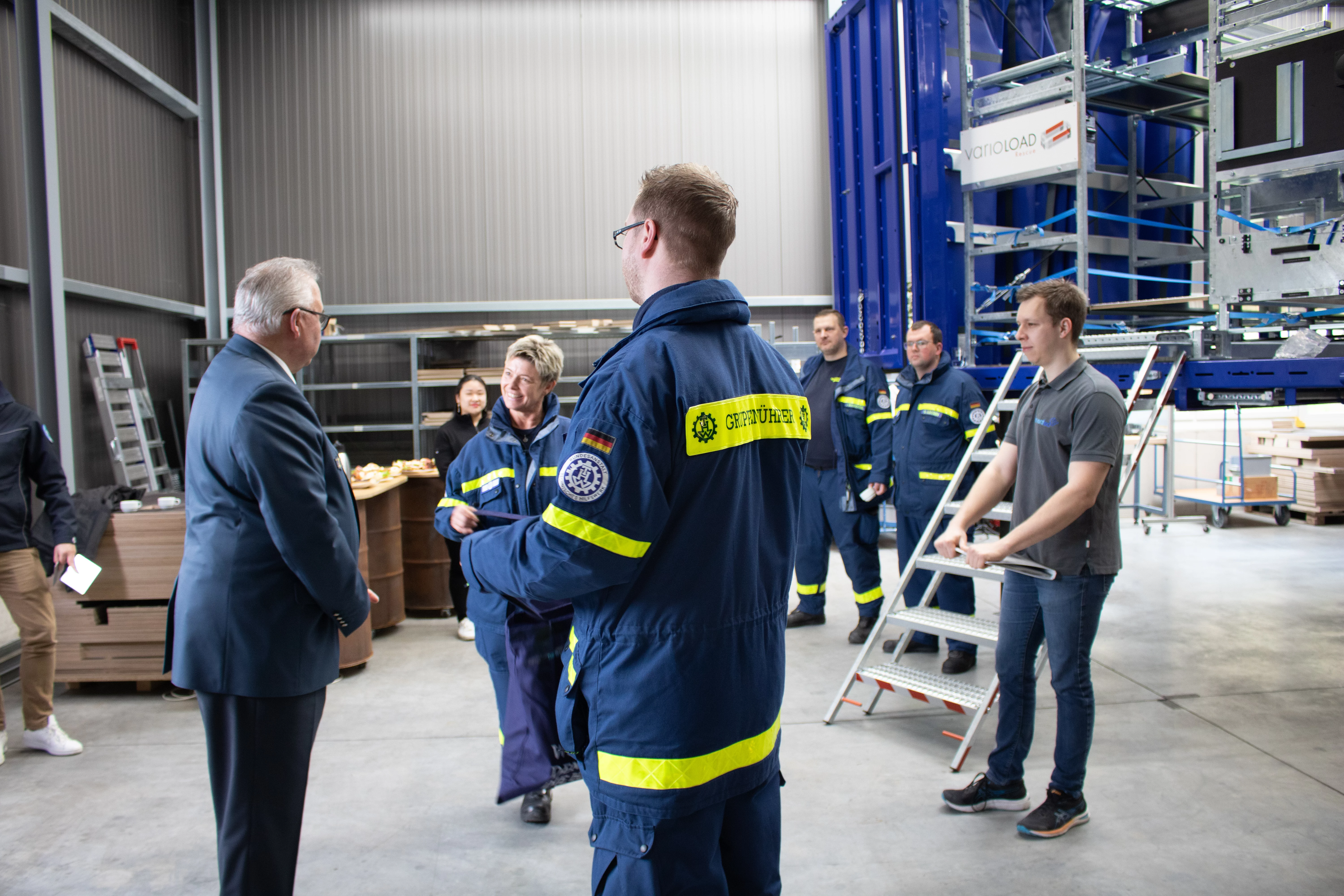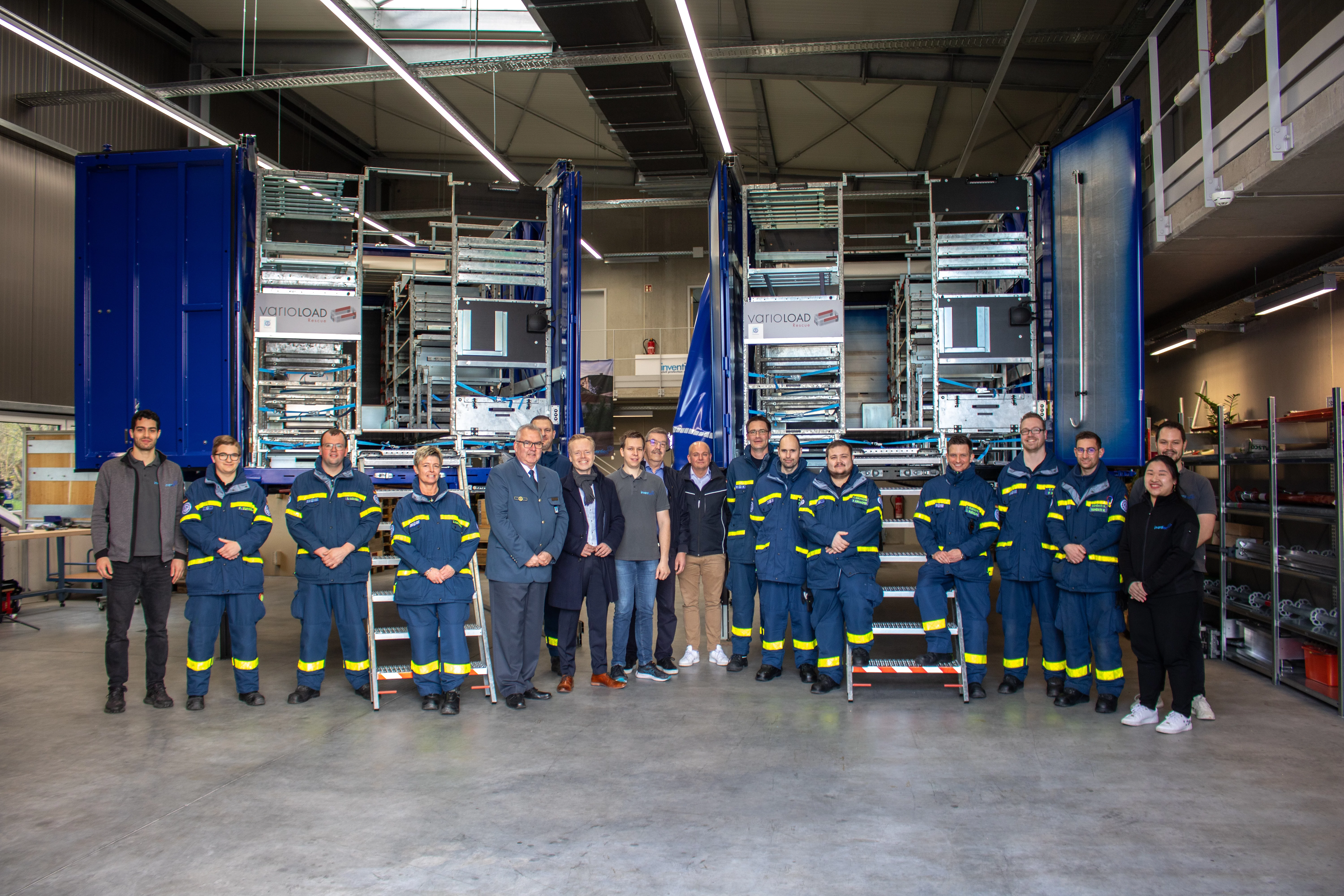 Dieses Erlebnis hatten die Vertreter der THW-Bundesvereinigung und der THW-Landesvereinigung Rheinland-Pfalz bei der Übergabe von zwei Vario-Load-Ladungsträgern an die THW-Ortsverbände Cochem und Wörrstadt. Die Übergabe fand in den Räumlichkeiten der Firma inventied in Rockenhausen statt, einem Start-up-Unternehmen, welches sich umfassend mit Lösungen für den Zivil- und Katastrophenschutz auseinandersetzt.