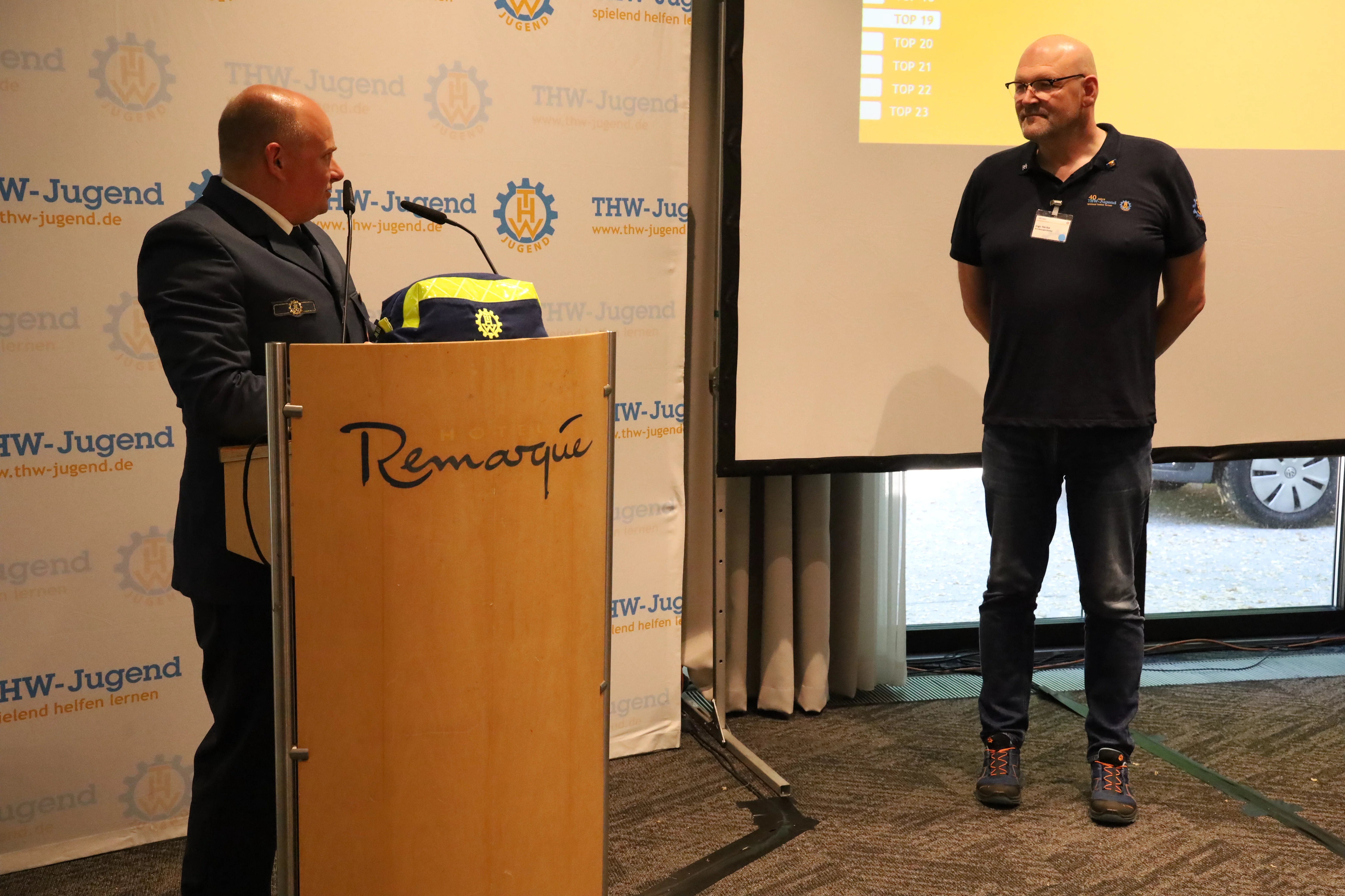 Auch die Zusammenarbeit mit der THW-Bundesvereinigung e.V. zeigt viele Erfolge auf, die Schulungen @Desaster, digitale Formate der THW-Jugend e.V. und das kommende Bundesjugendlager tragen die Handschrift von Ingo Henke. THW-BV Geschäftsführer, Ralf Weniger, ließ es sich daher nicht nehmen, bei der Verabschiedung diese gemeinsamen Projekte der THW-Familie noch einmal aufzuzeigen.