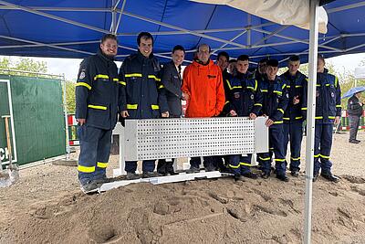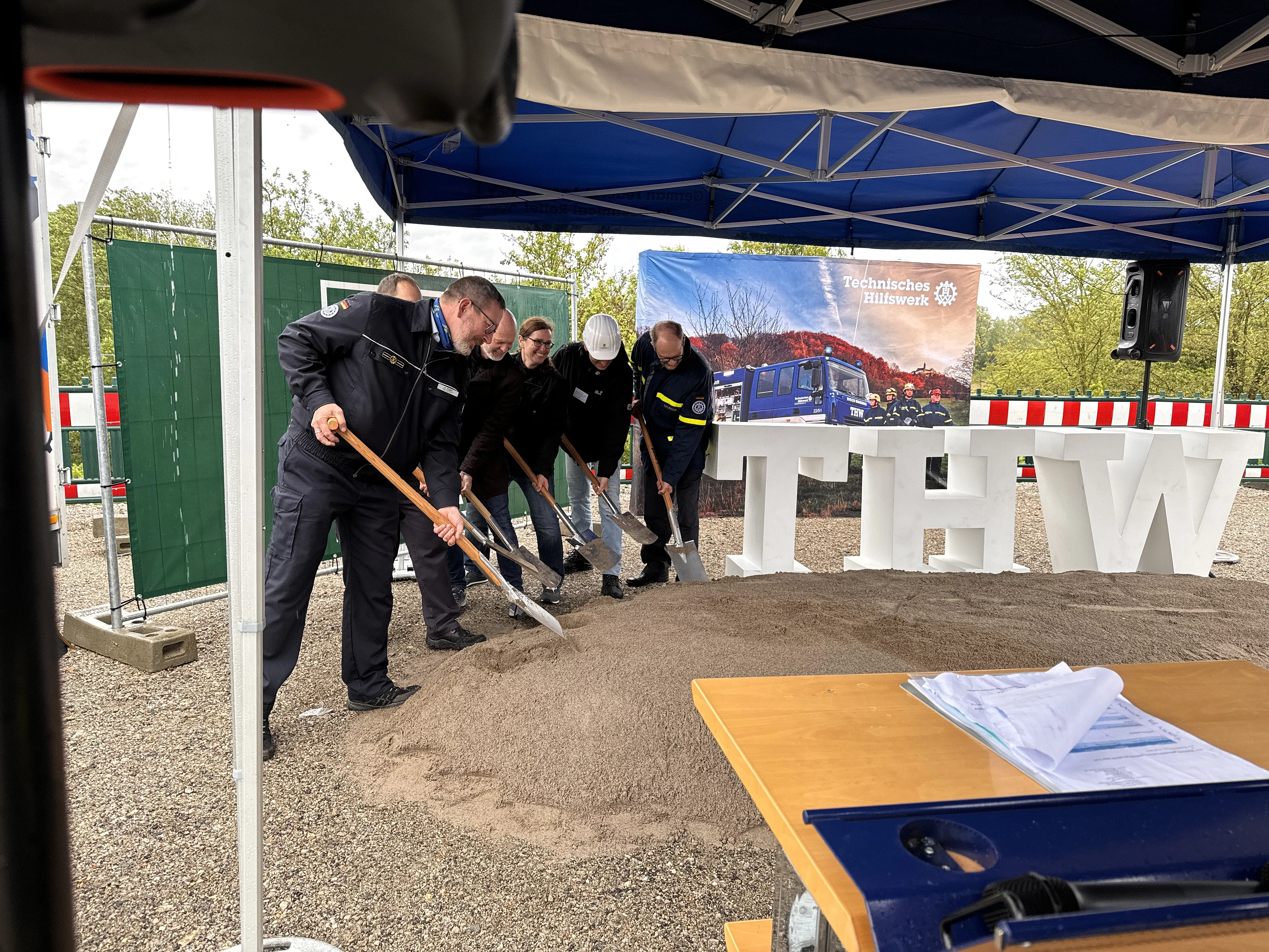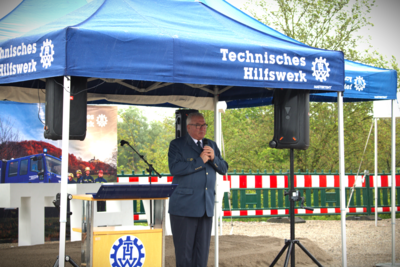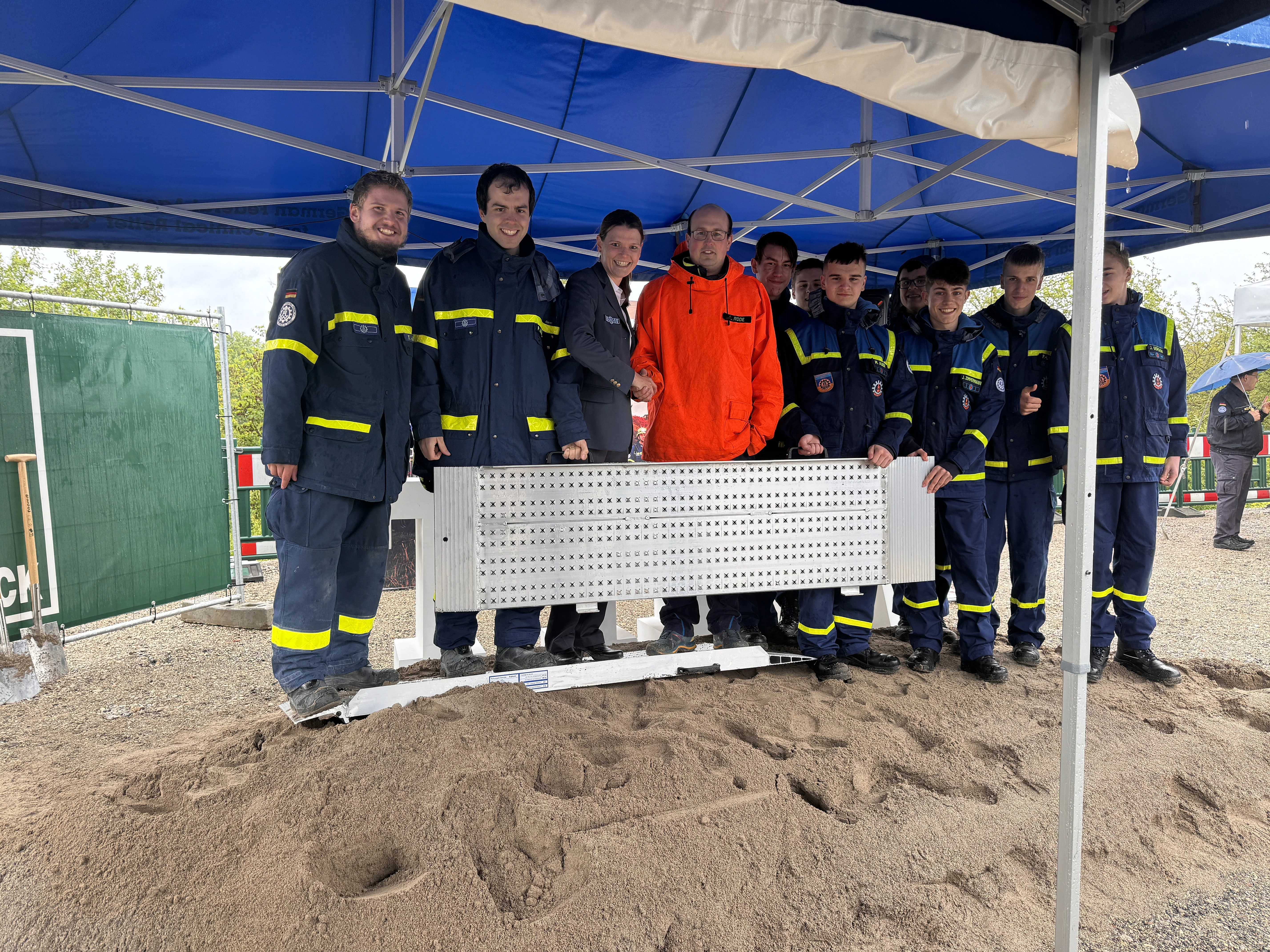 Zum einen überreichte Vizepräsident Markus Jaugitz dem OV als Gewinner des diesjährigen Ostergewinnspiels der THW-Bundesvereinigung die Rollwagenrampe der Firma inventied, zum anderen feierte man gemeinsam den ersten Spatenschicht der neuen Liegenschaft des Ortsverbandes.
