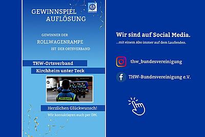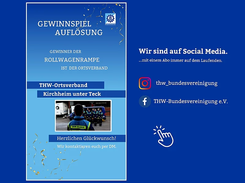 Getreu unserem Motto "Wir helfen denen, die helfen." unterstützt die THW-Bundesvereinigung Ortsverbände und einzelne THW-Helferinnen und Helfer ebenfalls mit regelmäßigen Gewinnspielen, bei denen die Gewinner nützliche Preise für das ehrenamtliches Engagement im THW erhalten. Bei dem diesjährigen Ostergewinnspiel gab es für THW-Ortsverbände eine Rollwagenrampe der Firma inventied zu gewinnen, mit der sich Gräben oder Hindernisse bewältigen lassen und das Beladen von Fahrzeugen erleichtert wird.